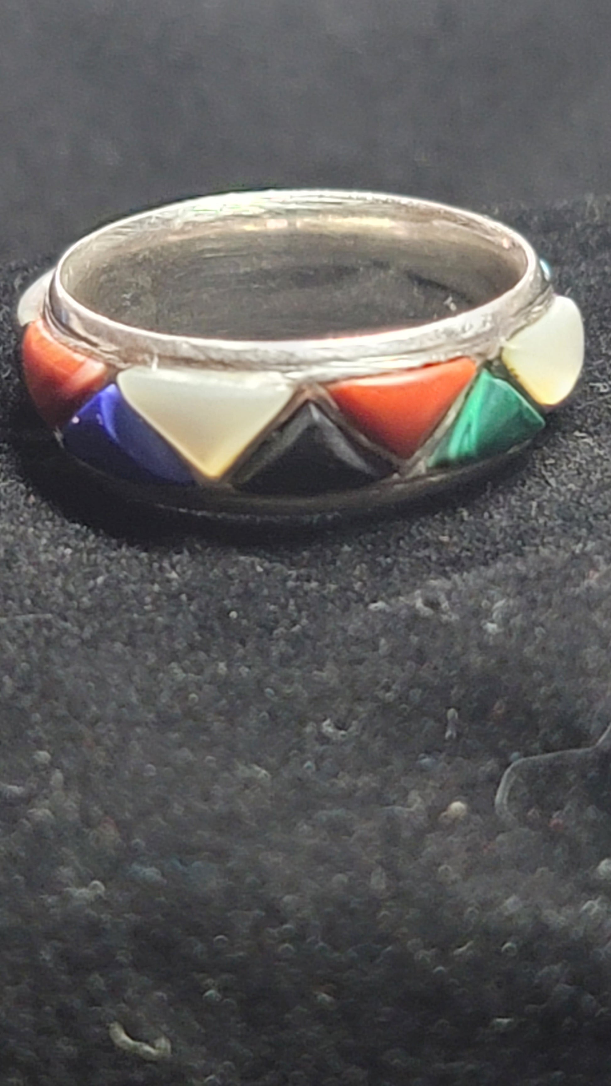 Sterling Silver Ring with Semiprecious Stones- Turquoise, Lapis, Malachite, Moonstone, Onyx, Coral